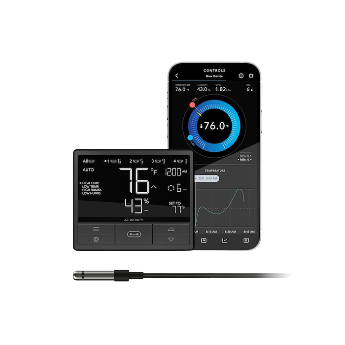 - Ein digitaler Controller, der AC Infinity-Geräte mit einer smarten Steuerung ausstattet, um optimale Klimabedingungen zu schaffen.