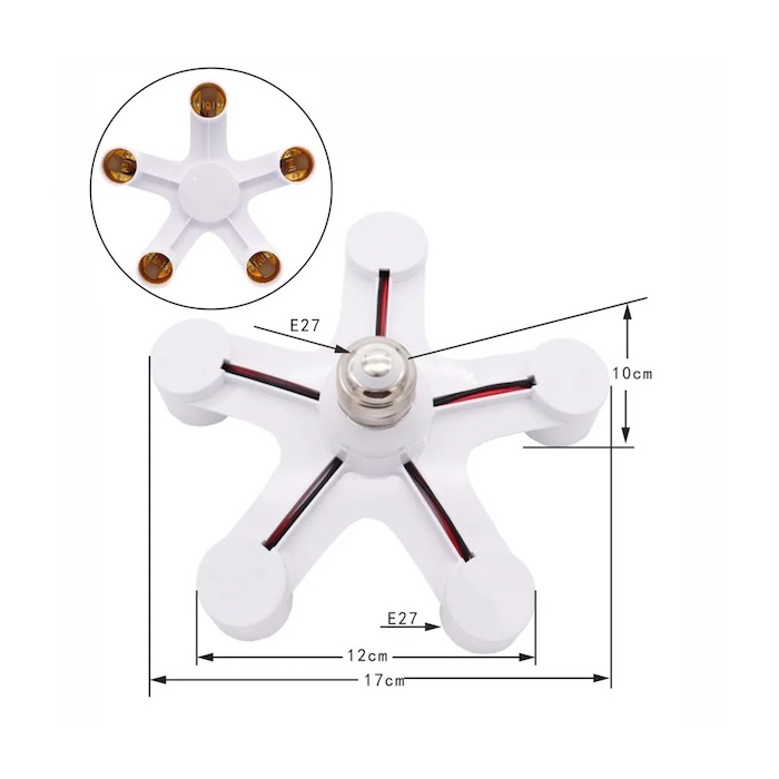 Konfigurieren Sie Ihre eigenen Wachstumslampen mit diesen Adaptern, wobei sich eine E27-Fassung in 3 E27-Fassungen oder in 5 E27-Fassungen aufteilt.