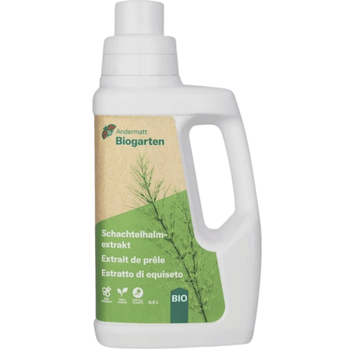 Natürlicher Extrakt aus Schachtelhalm zur einfachen Anwendung in Garten. Der konzentrierte Extrakt kann verdünnt und direkt mit einem Sprühgerät ausgebracht werden. Schachtelhalm enthält viel Kieselsäure. Diese stärkt die Zellwände der Pflanzen und verbessert so deren Robustheit gegenüber Schaderreger.