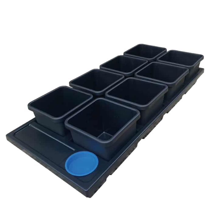 Bauen Sie an, was Sie wollen, wann Sie wollen, und genießen Sie gleichzeitig die unglaublichen platz- und wartungssparenden Vorteile eines Tray-Systems. Auto8 8.5ltr wird komplett mit acht quadratischen 8.5ltr Töpfen geliefert, kann aber auch die 15ltr Variante aufnehmen. Sie können die Töpfe nach Belieben austauschen - eine Anpassung des Trays ist nicht erforderlich.