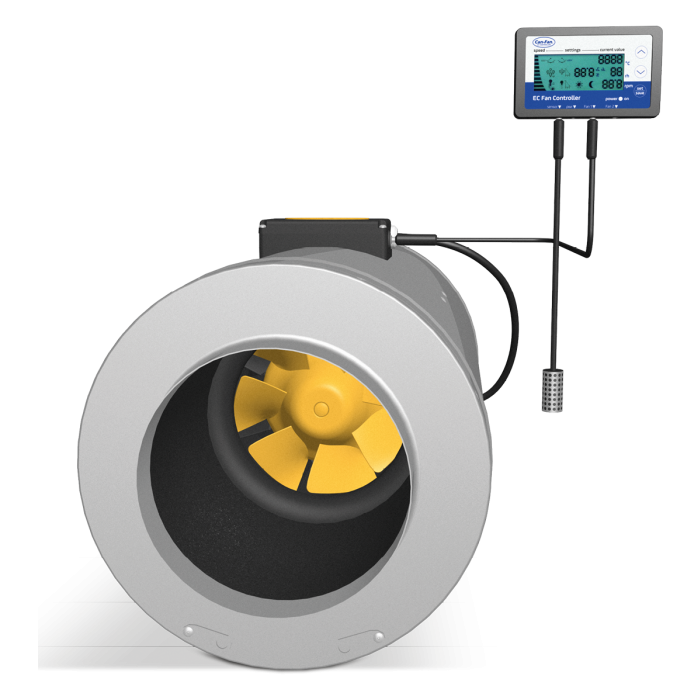 Q-Max Serie mit EC-Technologie ist ein Turbinen- oder Mischströmungsgebläse mit höchster aerodynamischer Effizienz und kleinstem Energieverbrauch aufgrund der neuen EC-Technologie und dem 3D-Rotor-Stator-System. Beim Q-Max EC ist ein Max Fan Pro Series EC-Motor in einem Schalldämpfer integriert. Kraftvoll trotz leisem Betrieb des Q-Max EC wird erzielt durch gleichmässigen turbulenzfreien Luftstrom und den kontinuierlichen, völlig störungsfreien Plug´n´Play Can-Fan speed oder speed und temperatur Controller. Bis zu 10 EC-Ventilatoren können sofort an den Can-Fan EC-Controller angeschlossen und gesteuert werden.