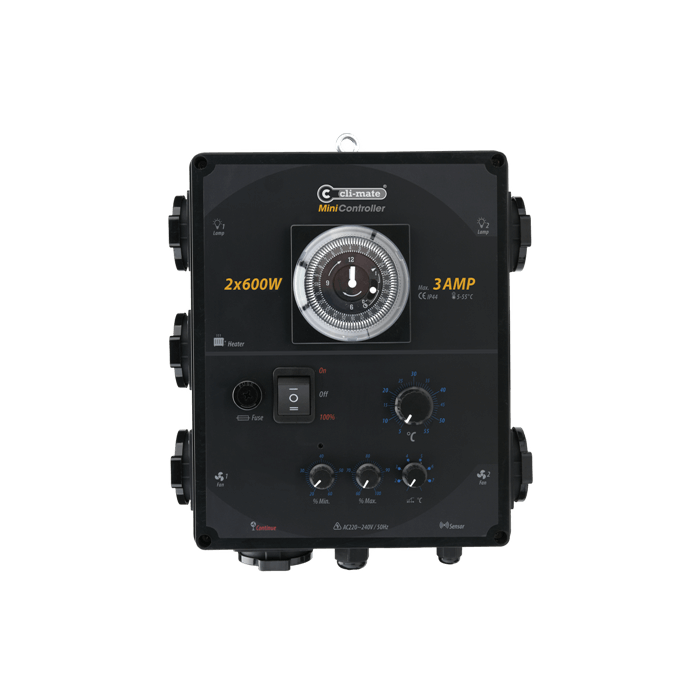 Der Mini-Controller HUMI, MH-Serie, ist für das Schalten von Lampen und Heizung gedacht und steuert die Geschwindigkeit und Versorgung der Ventilatoren entsprechend der Temperatur. Dieser Prototyp kommt auch mit einer Feuchtigkeitskontrolle, mit zwei Modi: Befeuchter und Luftentfeuchter. Er enthält einen doppelten Sensor für Temperatur und Feuchtigkeit.
