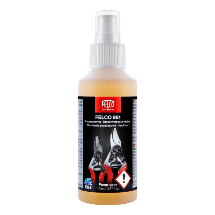 Der Harzlöser FELCO 981 wurde für Profianwender und anspruchsvolle Hobbygärtner entwickelt, die Harzrückstände auf ihren Schneidewerkzeugen ganz einfach entfernen wollen. Dieses Spezialprodukt sorgt für eine mühelose Reinigung und erhält die Leistungsfähigkeit Ihrer Werkzeuge.