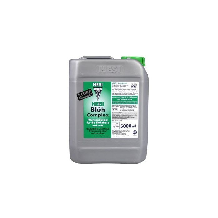 Der HESI Bloom Complex liefert den blühenden Pflanzen alle notwendigen Substanzen für ihren zusätzlichen Bedarf während der Blütezeit. Neben der Ernährung (Stickstoff, Phosphor, Kalium, Magnesium, Kalzium, Spurenelemente etc.) ist der HESI Bloom Complex auch mit Vitalstoffen (Aminosäuren und Vitamine) angereichert, die die Entwicklung der Pflanze optimal anregen. Das Ergebnis ist eine üppige Blüte! Darüber hinaus enthält der HESI Bloom Complex einen pH-Korrektor.