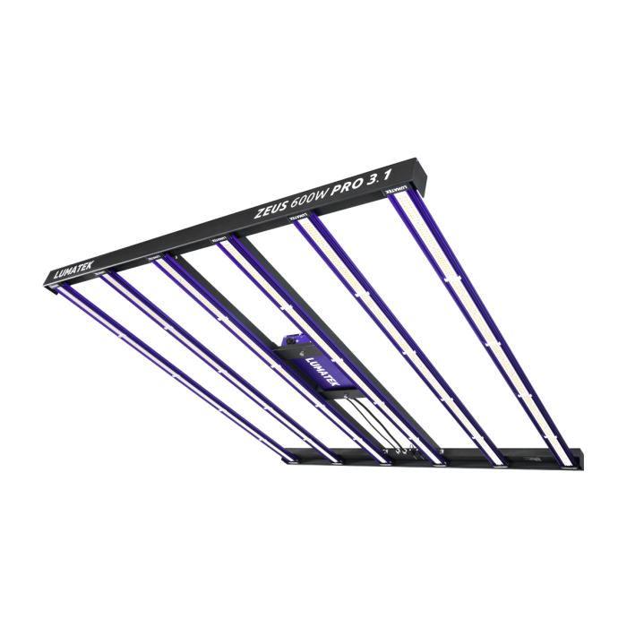 Die neue, höher spezifizierte LUMATEK ZEUS 600W PRO 3.1 LED ist eine lineare Multilicht-Leiste aus Aluminium, die hohe PPF-Werte von 1990 µmol/s erzeugt und eine Photonenausbeute von 3,1 µmol/J erreicht.