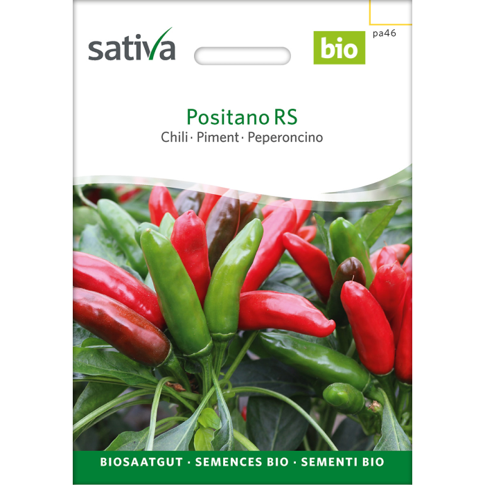 Der Positano RS Chili ist eine ergiebige Sorte mit aufrecht wachsenden Fruchtständen. Die 6-8 cm langen, etwa 2 cm breiten Früchte reifen von grün auf leuchtend rot ab und können bequem im Bund geerntet werden. Sie eignen sich hervorragend für frische Zubereitungen, zum Trocknen und für die Herstellung von Chilipulver. Die Sorte besitzt eine mittlere Schärfe, wodurch sie vielseitig in der Küche einsetzbar ist.
