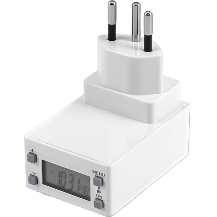 - Kompaktes Design: In einem klaren, weißen Gehäuse gehalten, fügt sich die Zeitschaltuhr dezent in jede Umgebung ein.