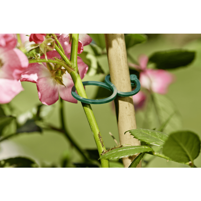 Die flexiblen Ringbinder aus Kunststoff ermöglichen eine sichere und pflanzenschonende Befestigung an Rankhilfen, Stäben oder Netzen. Dank ihres mitwachsenden Designs unterstützen sie den geraden und ungehinderten Wuchs deiner Pflanzen – ohne die Triebe einzuengen.